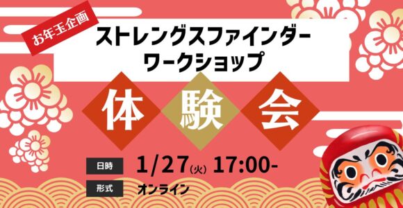| 対象者 | ・企業の人事・人材開発部門ご担当者 ・事業部や部門の育成ご担当者 ※クリフトンストレングス(ストレングスファインダー)を受験していない方もご参加いただけます ※コーチ・ご同業の方はご遠慮ください |