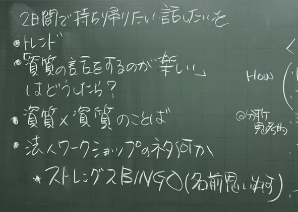 合宿でやりたいこと・持ち帰りたいことに答えるべく、朝一のテーマに決まったのは…