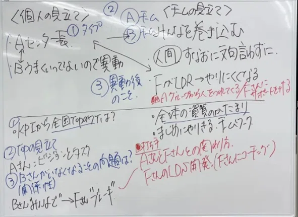 ・いま出てきている話=主語が不在(うちの組織、誰が、みんなが~ ばかり)…誰がやるかと、しっかり掴まないと進まないよねぇ